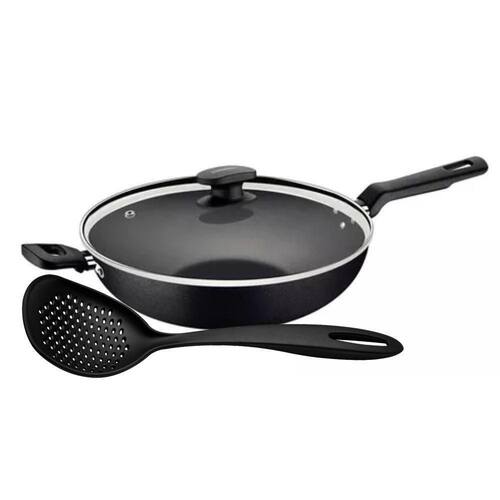 Wok com Cabo Loreto Alumínio Antiaderente 3,3L Grafite com Espumadeira Tramontina