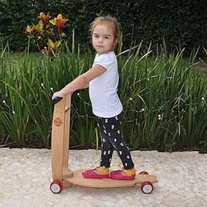 O Woodnete é um patinete de quatro rodas e giro limitado do guidão, evitando curvas repentinas e garantindo a estabilidade e a segurança da criança durante a brincadeira. Indicado para crianças de 2 a 5 anos que buscam aventura com segurança. Feito com madeira de reflorestamento, é um produto sustentável, extremamente durável, leve e resistente.