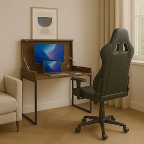 Com dimensões perfeitas para se encaixar sem pesar no ambiente: 90cm de largura, 60cm de profundidade, com 90cm de altura total quando fechada e 75cm de altura da superfície de trabalho quando aberta. A Workstation Slim vai muito além de uma simples escrivaninha. Seu grande diferencial é o tampo superior articulado, um mecanismo inteligente que permite abrir e fechar seu espaço de trabalho com total praticidade.