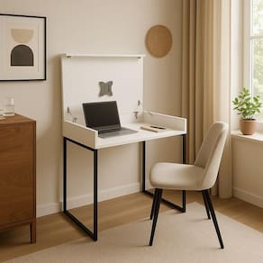 Com dimensões perfeitas para se encaixar sem pesar no ambiente: 90cm de largura, 60cm de profundidade, com aproximadamente 75cm de altura aberta e 90cm de altura total quando fechada. A Workstation Slim vai muito além de uma simples escrivaninha. Seu grande diferencial é o tampo superior articulado, um mecanismo inteligente que permite abrir e fechar seu espaço de trabalho com total praticidade.