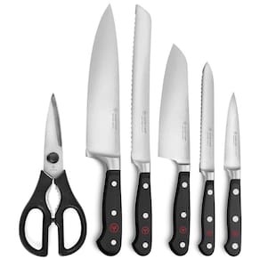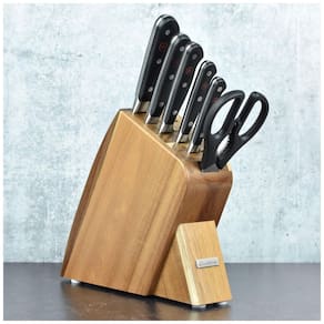Aço inoxidável resistente a manchas de alto carbono totalmente forjado e de espiga cheia com reforço. A borda PEtec aumenta a nitidez em 20 e dura o dobro, dureza 58 Rockwell. A alça de polioximetileno POM com rebites triplos resiste ao desbotamento e à descoloração O logotipo Trident na alça é permanente e resistente ao desgaste. Feito em Solingen, Alemanha Marca: Não Informado