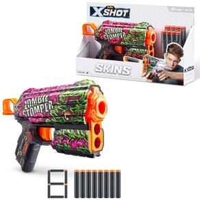 Vá direto para a batalha com a capacidade de dardo único do lançador X-Shot Skins Flux e armazenamento frontal de 2 dardos. O Flux eliminará seus inimigos e pode atingir alvos a até 27m de distância. O X-Shot Skins Flux vem em 6 skins com estampas exclusivas e de alta qualidade para selecionar e colecionar e vem com 8 dardos de espuma. A brincadeira será muito mais divertida com o X-Shot Flux Skins!