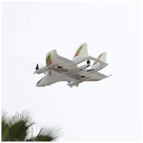 Função 3 modos de vôo, controle remoto 2.4G, 6CH, luz LED, interruptor 3D, 6G, uma tecla de pouso, decolagem, bateria de 11.1V 1000mAh. Adotou o material EPO de engenharia resistente ao impacto, e a haste de fibra de carbono embutida é reforçada e forte. A aeronave adota giroscópio de 6 eixos com pressão de ar e altitude, adequado para diferentes cenas e para iniciantes praticarem habilidades de voo. Três modos de voo, incluindo voo vertical , voo horizontal de avião 6G , voo multi rotor, trazem prazer de voo diferente e adequado para iniciantes e pessoas avançadas. Bateria de polímero de lítio de 11,1 V de grande capacidade com um tempo de voo de 15 minutos ou mais. Adota três motores brushless 1307 3000KV com lâminas de alta eficiência para potência total e quatro servos de direção digital s para puxar o motor dianteiro e controlar a superfície do leme da aeronave. Tamanho do brinquedo Marca: Não Informado