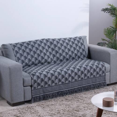 XALE PARA SOFÁ COM FRANJA LUXOR DUPLA FACE 2,10 X 1,35M TECIDO JACQUARD.