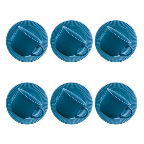 Xícara de chá com Pires Canelé Azul 200ml 6 Unidades - Biona 135921 O doce francês Canelé inspirou a coleção que leva o seu nome. A iguaria ganhou o coração dos franceses por ser feita de maneira simples, já que o destaque fica para o seu formato canelado, relevo que foi aplicado na aba dos pratos da coleção. Na decoração Azul recebe uma tonalidade forte e discreta. Características do Produto: Material: Cerâmica. Marca: Biona. Fabricado: Oxford. Linha Canelé Conteúdo da Embalagem: 6 Xícaras com Pires. Cor: Azul. Formato: Redondo. Capacidade: 200 ml. Decoração: Estampado. Altura da Xícara: 7 cm. Diâmetro da Xícara: 9 cm. Diâmetro do Pires: 14 cm. de Fabricação: 90 dias Defeitos de fabricação . Imagens meramente ilustrativas. Marca: Não Informado