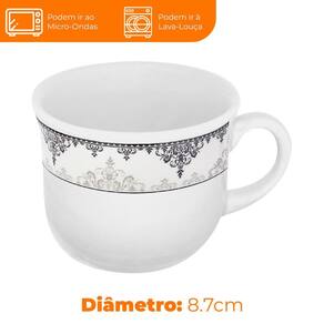 A Xícara de café e chá da Hauskraft é feita em porcelana branca com desenho floral. Possui alça que facilita na hora de tomar sua bebida e aproximadamente 200mL de capacidade.