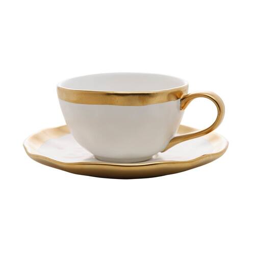 A LINHA DUBAI É COMPOSTA POR PEÇAS CONTEPORÂNEAS MARCADAS POR BELEZA E MODERNIDADE. A XÍCARA PARA CHÁ É PRODUZIDA EM PORCELANA E FORNECIDA JUNTAMENTE AO PIRES QUE SE DESTACA PELO DOURADO MARCANTE E BORDA SEMI IRREGULAR QUE ACRESCENTA O EFEITO DE ONDULAÇÕES. O CONJUNTO IDEAL PARA FASCINAR OS CONVIDADOS NA ARTE DE RECEBER.