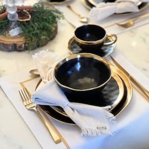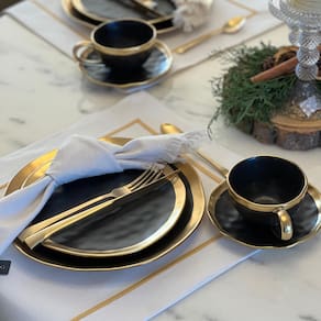 Xícara Para Chá Com Pires Em Porcelana Dubai 200ml Wolff Preto e Dourado -
