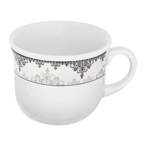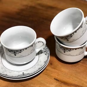 A Xícara de café e chá da Hauskraft é feita em porcelana branca com desenho floral. Possui alça que facilita na hora de tomar sua bebida e aproximadamente 200mL de capacidade.