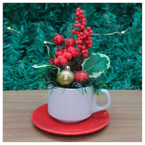 Elegância para a sua casa.O Natal é tempo de celebrar o amor, comemorar a vida com novas esperanças, novos sonhos e também é a hora de deixar a casa mais bonita para receber a família nesta data tão importante.Você poderá realizar um Natal com toque de charme e bom gosto que contagiará seus convidados com o espírito natalino, deixando a sua casa decorada de uma forma diferente e apropriada para a data mais esperada do ano.Especificações:Material: Cerâmica e plásticoTipo da embalagem: Papelão pardoFormato: RedondoConteúdo da embalagem:• 1 xícara com pires com enfeite natalino