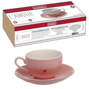 Com medidas aproximadas de 11 x 8,7 x 5,5 cm para a xícara e 13,8 x 13,8 x 2 cm para o pires, esse jogo se destaca pelo seu design delicado e charmoso. A cor rosa e o formato em coração dão um toque especial e romântico às peças, tornando-as perfeitas para ocasiões especiais.