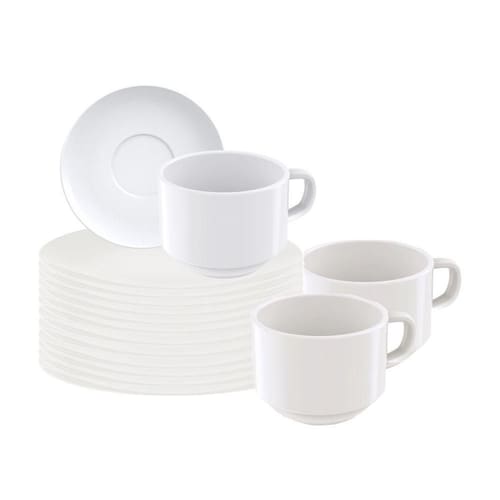 Conjunto de Xícaras e Pires Tramontina Paola Porcelana Branca 240ml