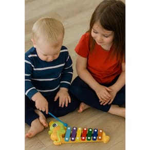 Possui 8 teclas coloridas que emitem sons diferentes, tornando o aprendizado musical mais fácil e divertido.