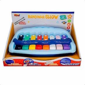 Xilofone Piano Infantil - Bandinha Show - Azul - Zoop Toys: O Xilofone e Piano 2 em 1 da Zoop Toys vem com 2 baquetas e partituras. Possui alça para carregar. As baquetas podem ser posicionadas no fundo para transporte. Com espaço para colocar as partituras e tocar junto. Detalhes: • 2 em 1: Xilofone e Piano • Vem com duas baquetas para tocar o Xilofone • Xilofone com 8 notas • Piano com 8 notas • Suporte para partituras • Alça para fácil transporte • Baquetas encaixam na parte de baixo • Vem com 06 partituras Informações: • Produto: Mini Baby Xilofone Piano Bandinha Show Azul • Marca: Zoop Toys • Coleção: Bandinha Show • Cor: Azul • Tipo: Xilofone e Piano 2 em 1 • Categoria: Instrumentos Musicais de Brinquedo • Subcategoria: Xilofones Infantis • Conteúdo: - 01 Xilofone Piano 2 em 1 - 02 Baquetas - 06 partituras • Recomendação: para bebês a partir de 06 meses de idade Especificações: • Referência: ZP01221 • Código de Barras: 7899788408442 • Embalagem (C x A x L): ?32 x 20 x 19 cm • Embalagem (Peso): 0.900 Kg • Material / Composição: Metal e Plástico • Registro: 009429/2023 • Certificado: Órgãos Autorizados - OCP´S (Organismos de Certificação de Produtos) Aviso: • As imagens são meramente ilustrativas • Os pesos, tamanhos e medidas são aproximados • As cores e estampas dos produtos podem ter variações • As informações são de responsabilidade do fabricante ou fornecedor