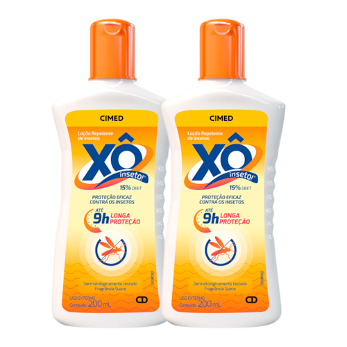 Xô Inseto Loção 200ml Fórmula especialmente desenvolvida para repelir insetos como mosquitos, pernilongos, borrachudos e muriçocas. Eficazes também contra o mosquito da dengue. Repelente eficaz contra o Aedes aegypti, transmissor da dengue, zika, chikungunya, malária e febre amarela. Proteção de até 9 horas. Com aloe vera, um hidratante natural que deixa a pele com sensação de frescor e uma suave fragrância. Ean: 7897947613645