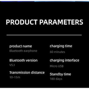 Especificações técnica: Modo: TWS Tensão de trabalho: 3. 3 V-4, 2 volts Capacidade da bateria: 40mA / 3000mA Tempo de carregamento: cerca de 1 horas Tempo de uso: 5 a 6 horas Tempo de espera: cerca de 60 horas Versão Bluetooth: v5.1 + EDR Faixa de transmissão: 45Hz-20000Hz Sensibilidade: 92 dB Distância de comunicação: distância efetiva de 15 metros Cor do produto: preto Peso do produto: cerca de 100g Suporte: a2dp/avrcp/avdtp/avctp/hfp/gavdp Música surround 3d de alta fidelidade Mini na orelha, confortável de usar Display de bateria digital Suporte última e próxima música Suporte ajustar o volume Fácil de transportar.