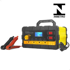INTELIGENTE: Controlado por microprocessador, detecta a quantidade de carga necessária para a bateria, enviando apenas o necessário e interrompendo o envio de carga quando atinge 100%*.
