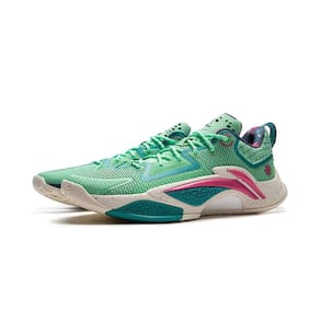 Zapatillas de baloncesto para hombre LI-NING BAD5 Dominator I, diseñadas para ofrecer un alto rendimiento en juegos de baloncesto al aire libre. Cuentan con tecnología ligera y de alta respuesta en la entresuela (Li Ning BOOM y LIGHT FOAM PLUS) para un rebote excepcional, estabilidad mejorada con PROBAR LOC que previene torceduras y refuerza la resistencia torsional, además de una suela de goma sintética TUFF OS que proporciona alta adherencia y durabilidad. La parte superior ULTRA SHELL garantiza transpirabilidad y un ajuste cómodo. Su diseño moderno combina tonos verdes vibrantes con detalles en rosa y texturas atractivas, ideal para atletas jóvenes y con estilo. Talla US 9.5, enfocadas en jugadores de baloncesto que buscan calidad y funcionalidad para actividades en exteriores.