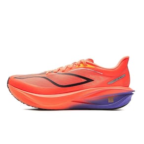 Zapatillas para correr LI-NING FEIDIAN 5 CHALLENGER para hombre, modelo ARMV001, con tecnologías innovadoras BOOM en la mediasuela y BOOM FIBER en la parte superior, placa de fibra de carbono y suela GCR de caucho. Materiales: parte superior textil y TPU, suela de goma. Destacan por su diseño ligero, transpirable y cómodo, con mayor soporte, amortiguación y resistencia al deslizamiento. Color neón Roaring Flame con un degradado vibrante naranja y púrpura en la suela. Talla mostrada: US 7.5. Fortalezas: 1. Materiales avanzados que mejoran peso, durabilidad y rendimiento. 2. Enfoque en la eficiencia de carrera, soporte y seguridad con placa de fibra de carbono y suela especial. 3. Diseño llamativo para corredores que buscan estilo. 4. Atención al cliente que genera confianza. Posicionamiento en el mercado: Producto premium dentro del segmento de zapatillas de correr de alto rendimiento, atractivo para corredores serios gracias a su ligereza, transpirabilidad, amortiguación y seguridad. Recomendaciones para gestión de categoría: - Ubicar en subcategoría "Zapatillas de Rendimiento para Hombre" o "Calzado Atlético". - Estrategia de precios medio-alto considerando competencia. - Promocionar tecnologías BOOM y BOOM FIBER y beneficios en rendimiento. - Destacar diseño ligero, durabilidad y resistencia. - Resaltar color neón para público joven y consciente de moda. - Exhibición en tienda en lugares visibles con señalización de tecnologías. - Estrategia e-commerce con descripciones detalladas, imágenes y videos. - Mantener stock variado y analizar ventas para demanda. - Sugerir productos complementarios como calcetas, plantillas o accesorios de hidratación. Producto con gran potencial por innovación y diseño contemporáneo, clave comunicar sus ventajas tecnológicas para impulsar ventas.