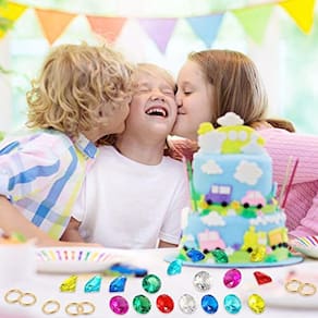 : O conjunto perfeito pode ser aplicado na sala, fora da caça ao tesouro, jogo de praia, no carro, mesmo na banheira, as crianças podem jogá-los em todos os lugares. As joias são presentes agradáveis para as crianças, como presente de aniversário, presente de Halloween, presente de Natal e assim por diante. Material: acrílico;