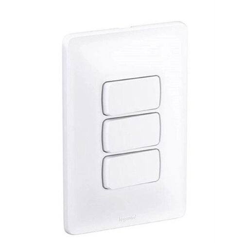 Conjunto 3 interruptores simples Zeffia - praticidade e beleza ao seu alcance A linha Zeffia da Legrand chegou para deixar sua vida muito mais fácil, e sua casa muito mais bonita e agradável. De acabamento branco brilhante e sem parafusos aparentes, Zeffia apresenta uma superfície lisa que preserva sua beleza por muito mais tempo. Suas teclas são mais ergonômicas e suaves no acionamento, e seguem a tendência de mercado. Uma linha bonita e fácil de instalar, que se ajusta perfeitamente à parede através do ajuste gradual Acabamento branco brilhante e sem parafusos aparentes Teclas largas são mais ergonômicas e suaves no acionamento Uma linha com diversas opções para compor a combinação necessária Bornes automáticos de conexão rápida, travam os condutores automaticamente, reduzindo o tempo de instalação O ajuste gradual da placa ao suporte proporciona perfeito acabamento entre placa e parede Sistema Orolux: mais praticidade na hora de fixar. Sistema que facilita a instalação em caixas embutidas mais profundas na parede.