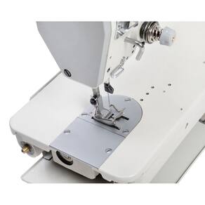 Para tecidos pesados e extra pesados Sistema de semi lubrificação Garante uma costura perfeita Sistema de retrocesso por excêntrico