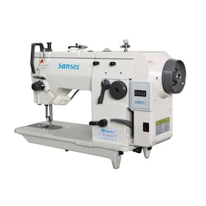 Máquina Zig-zag Semi-industrial Sansei SA-G20U93. Zig-zag com 2 pontos, lubrificação automática por bomba de óleo. Voltagem: Bivolt chaveado (atrás do motor possui uma chave seletora de voltagem). COMO É ENVIADO O PRODUTO: A máquina é enviada em 02 volumes. Volume 01 - Conteúdo: - Cabeçote completo; - Porta fios; - Acessórios Diversos; - Caixa medindo 0,26 x 0,52 x 0,59 = 0,080m3; Volume 02 - Conteúdo: Estante (mesa) desmontada composta por; - Tampo de madeira revestido em fórmica impermeável c/gaveta; - Pé de ferro pintado por imersão.