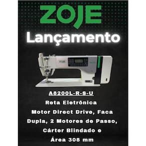 Máquina de costura reta industrial eletrônica com Direct Drive, faca dupla, leito alongado (31cm), 2 motores de passo para controle de ponto e retrocesso, arremate automático, posicionamento de agulha e levantador de calcador automático. Indicada para materiais leves a médios.Funções
