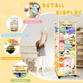 Espaço de armazenamento adequado: Nosso rack de armazenamento de brinquedos de pelúcia oferece amplo espaço de armazenamento para acomodar brinquedos de pelúcia de tamanhos diferentes, mantendo os brinquedos do seu filho longe do chão e evitando ser pisado. Ele também pode manter o quarto limpo e espaçoso por muito tempo, ao mesmo tempo em que cultiva a capacidade prática de seu filho de organizar e armazenar.