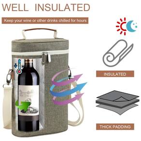 Proteção e isolamento térmico possui isolamento maxcold para manter seus vinhos frescos. o forro acolchoado com isolamento superespesso mantém o interior mais fresco por mais tempo e protege as garrafas. esteja você indo para a praia, para o parque ou para um dia de passeio, esta bolsa de vinho é a maneira perfeita de transportar e resfriar seu vinho. O melhor material e fácil limpeza Exterior de poliéster 600d de alta qualidade para garantir durabilidade máxima. forro resistente a vazamentos e fácil de limpar, perfeito para transportar vinhos para um restaurante, piquenique, praia ou festas. Design portátil e inteligente bolsa de vinho inclui uma chave de vinho de zenamento automático, tem uma alça e uma alça de ombro ajustável, você pode facilmente carregar seu porta vinho pela alça de couro pu ou pela alça de ombro, zíper de separação de 2 vias e fecho de aço inoxidável . Grande espaço de zenamento esta sacola de vinho de 2 garrafas isolada premium mede 20 x 7 x . É grande o suficiente para duas garrafas de vinho ou champanhe. Para os amantes da cerveja, caberá em vários crowlers de cerveja e um rosqueador de cerveja. se encaixa na maioria das garrafas de vinho de 750ml padrão, a qualquer momento, saboreie sua bebida