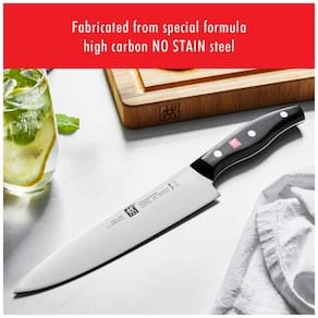 FABRICAÇÃO DE QUALIDADE Aço de fórmula especial Zwilling, lâminas estampadas de precisão Tradicional, alça de polímero de design de 3 rebites é incorporada com o logotipo Zwilling, fabricado na Alemanha LÂMINA TOUGH Lâmina FRIODUR, endurecida com gelo até 57 Rockwell Hardness SHARP EDGE Afiado e polido à mão, borda controlada a laser CORTE PRECISO ângulo de 15 graus em cada lado 10 graus no Santoku LAVADORA DE LAVAR LOUÇA Recomenda se lavar as mãos LEVE E FORTE Lâmina estampada de uma peça para uma faca mais leve sem sacrificar a força Marca: Não Informado